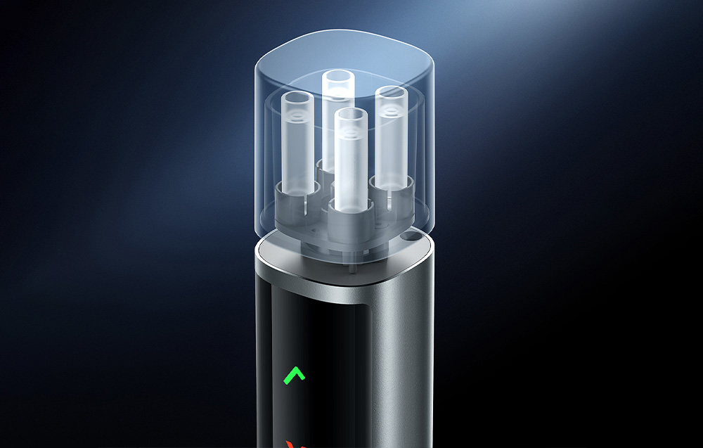 Analyzátor je vybaven čtyřmi trubičkami z bezpečného PP materiálu pro bezkontaktní měření. Stačí fouknout ze vzdálenosti 6 cm, a výsledek se zobrazí na přehledném LCD displeji. Režim Multi umožňuje rychlé testování více řidičů za sebou bez nutnosti manuálního resetu, přičemž další měření je připraveno během pouhých 15 sekund.