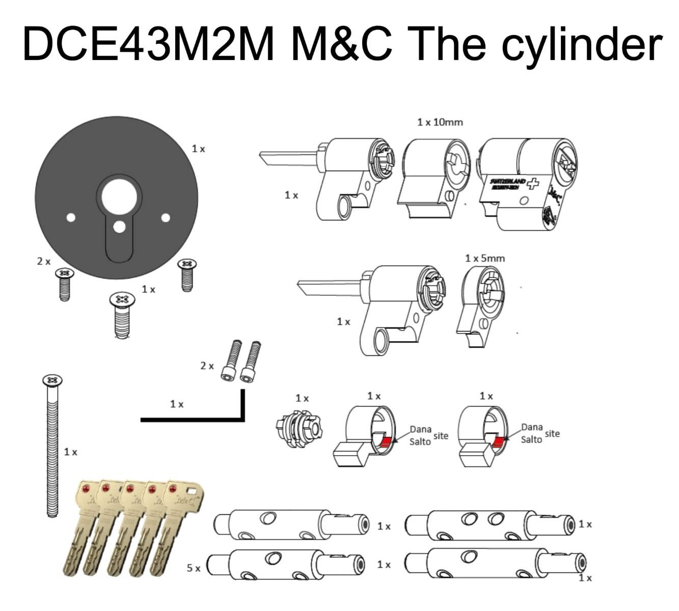 Cylindrická vložka je nastavitelná díky 4 vnitřním modulům a 2 adaptérům, což umožňuje vytvoření 5 různých velikostí, které odpovídají nejběžnějším evropským typům dveří. Vnitřní délka vložky je vždy kratší než montážní prostor kvůli použití adaptéru Danalock, což zajišťuje kompatibilitu a bezpečnost.