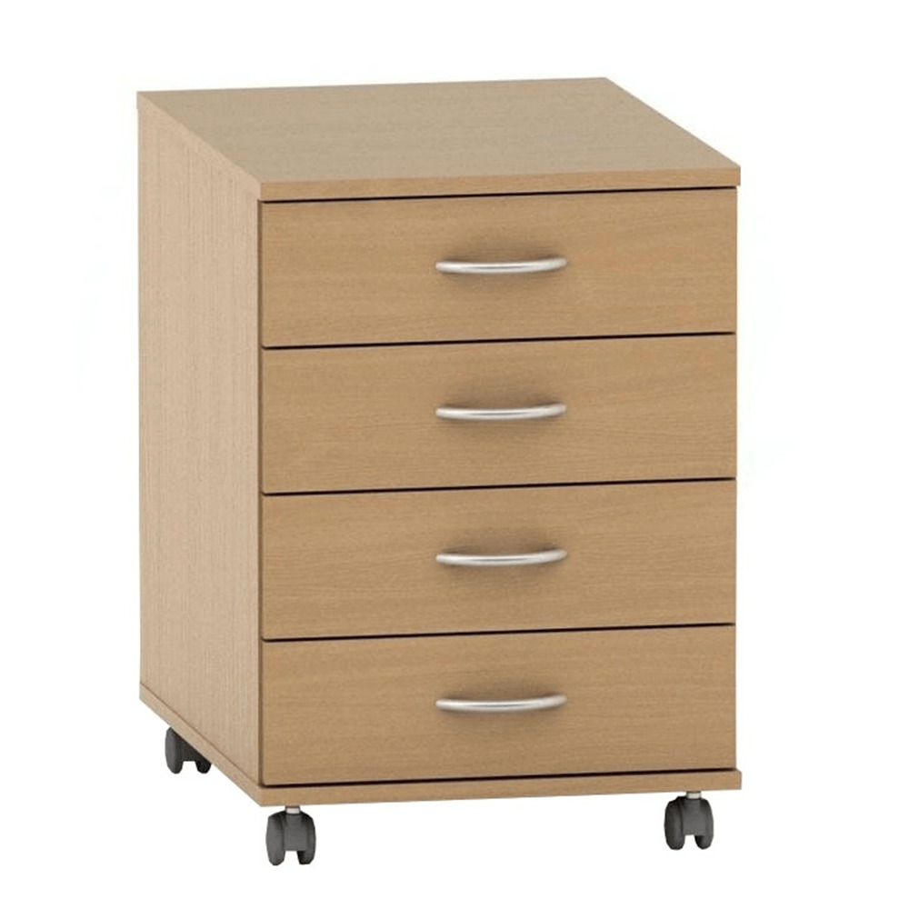 Kontejner je vyroben z laminované DTD desky s odolnými ABS hranami, které prodlužují jeho životnost. Barevné provedení v dekoru buk přináší stylový vzhled, který snadno zapadne do každé kanceláře nebo domácí pracovny. Rozměry 43 × 60 × 61 cm zajišťují dostatek úložného prostoru, ale je třeba počítat s tím, že nelze zcela zasunout pod pracovní stůl. Kontejner je dodáván v demontu pro snadný transport a montáž.