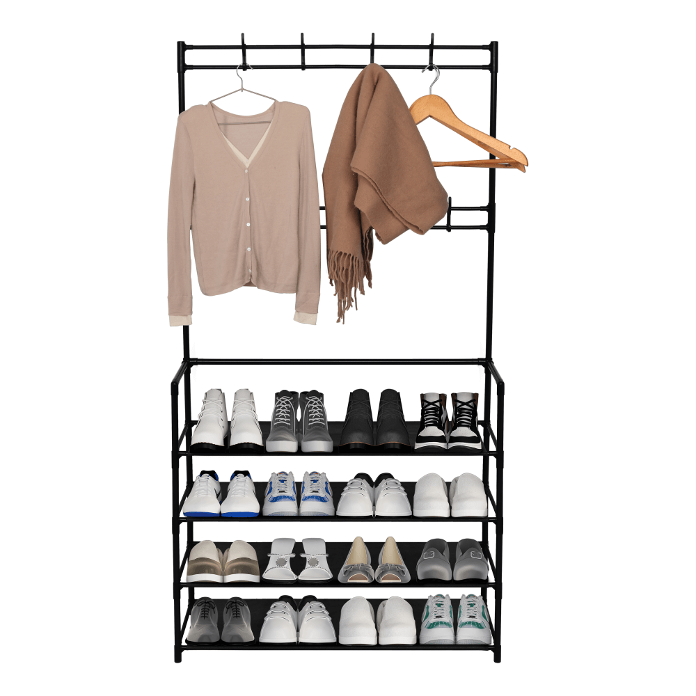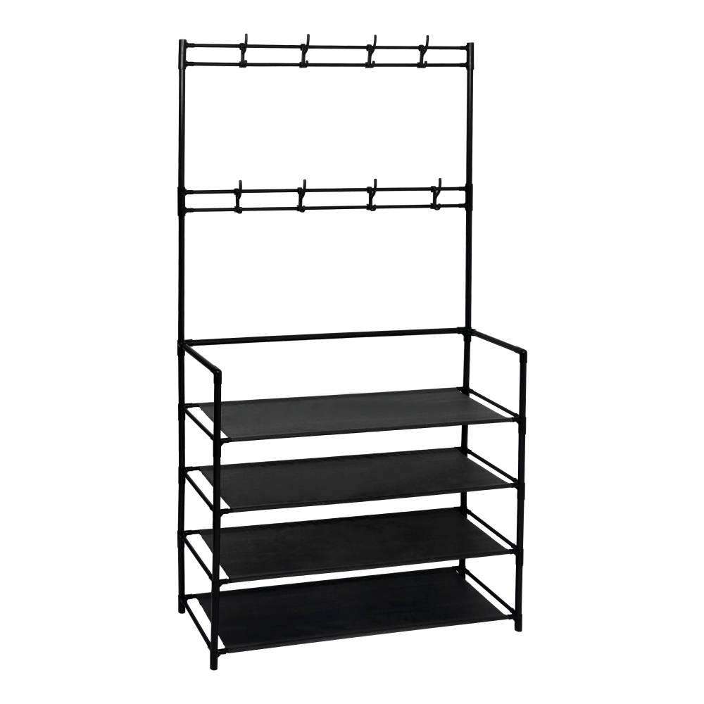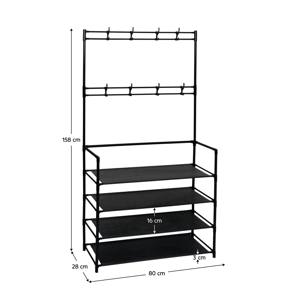 Doplňte svou předsíň moderním a multifunkčním věšákem s botníkem TARAS. Skvěle oživí váš interiér a poskytne návštěvám pohodlné místo na odložení kabátů i bot. Díky svému elegantnímu designu v černé barvě zapadne do jakéhokoliv stylu bydlení.
