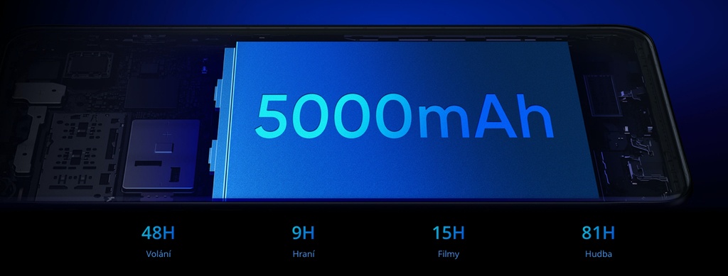 5000mAh velkokapacitní baterie - Až jeden měsíc v pohotovostním režimu
