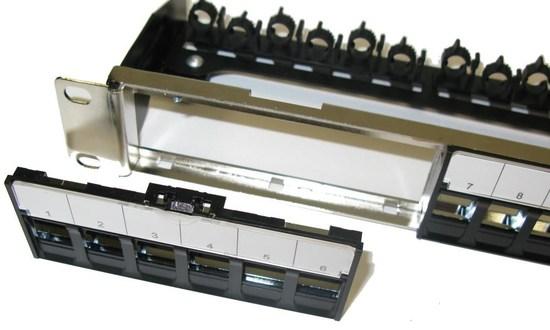 19" modulární stíněný patch panel XtendLan 24port, 4x demontovatelný modul, černý