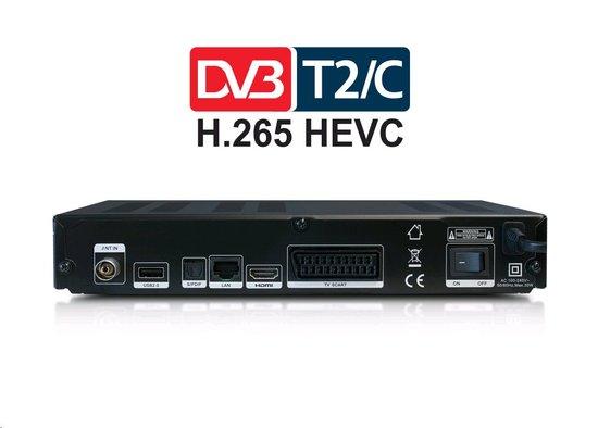 Přijímač určený pro pozemní a kabelové vysílání v nejnovějších normách DVB-T/DVB-T2 a DVB-C s podporou H.265 HEVC.