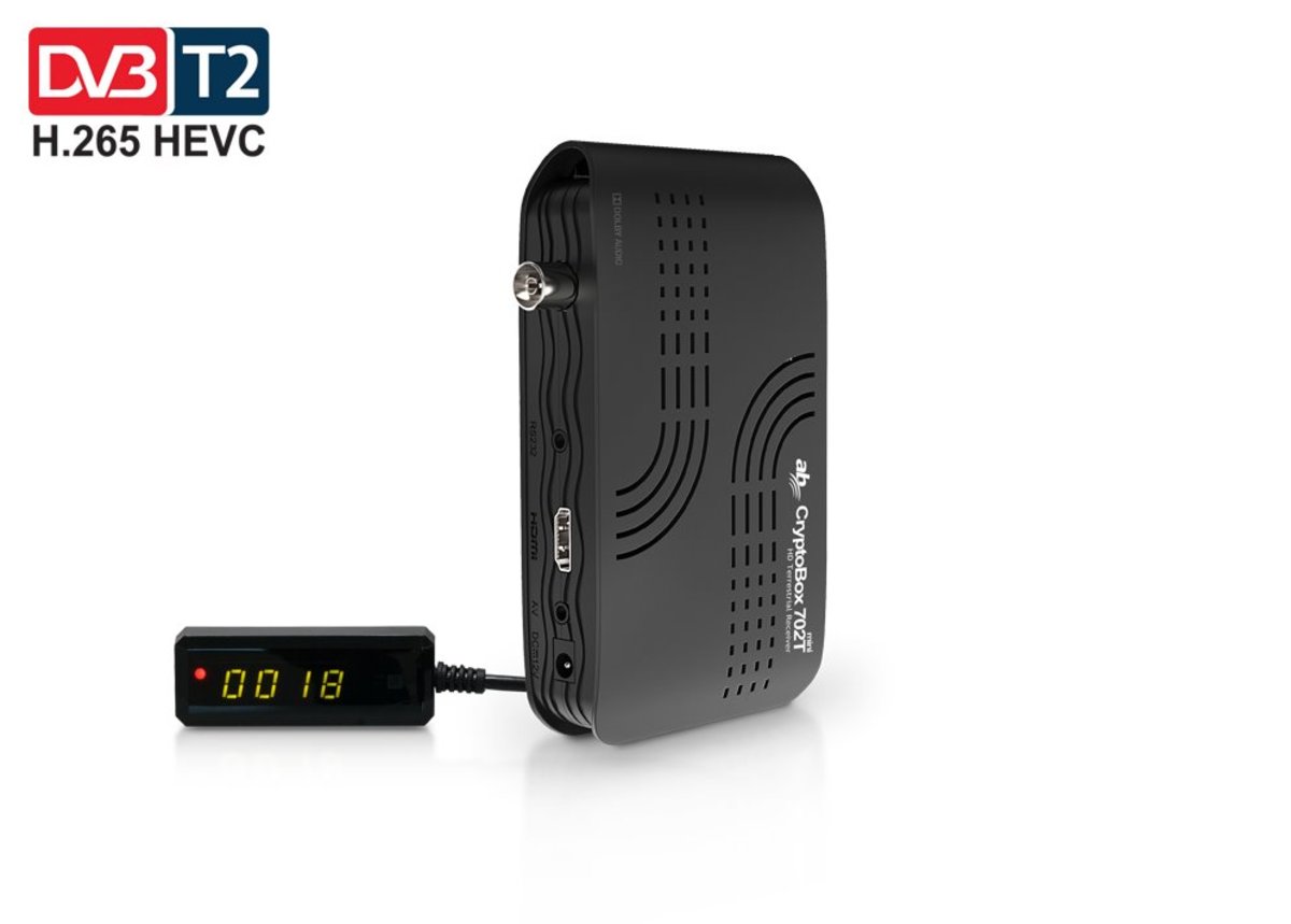 Multimediální DVB-T2/CpřijímačAB CryptoBox 702T mini s podporou HEVC/H.265. Z rozhraní nabízí: univerzální čtečka karet, HDMI výstup, 2x USB 2.0 a AV výstup (analogový) přes jack 3,5 mm. Přehrávání z USB, nahrávání na externí USB paměť, Timeshift, EPG, externí IR přijímač a LED displej, dálkový ovladač, podpora HDMI-CEC.