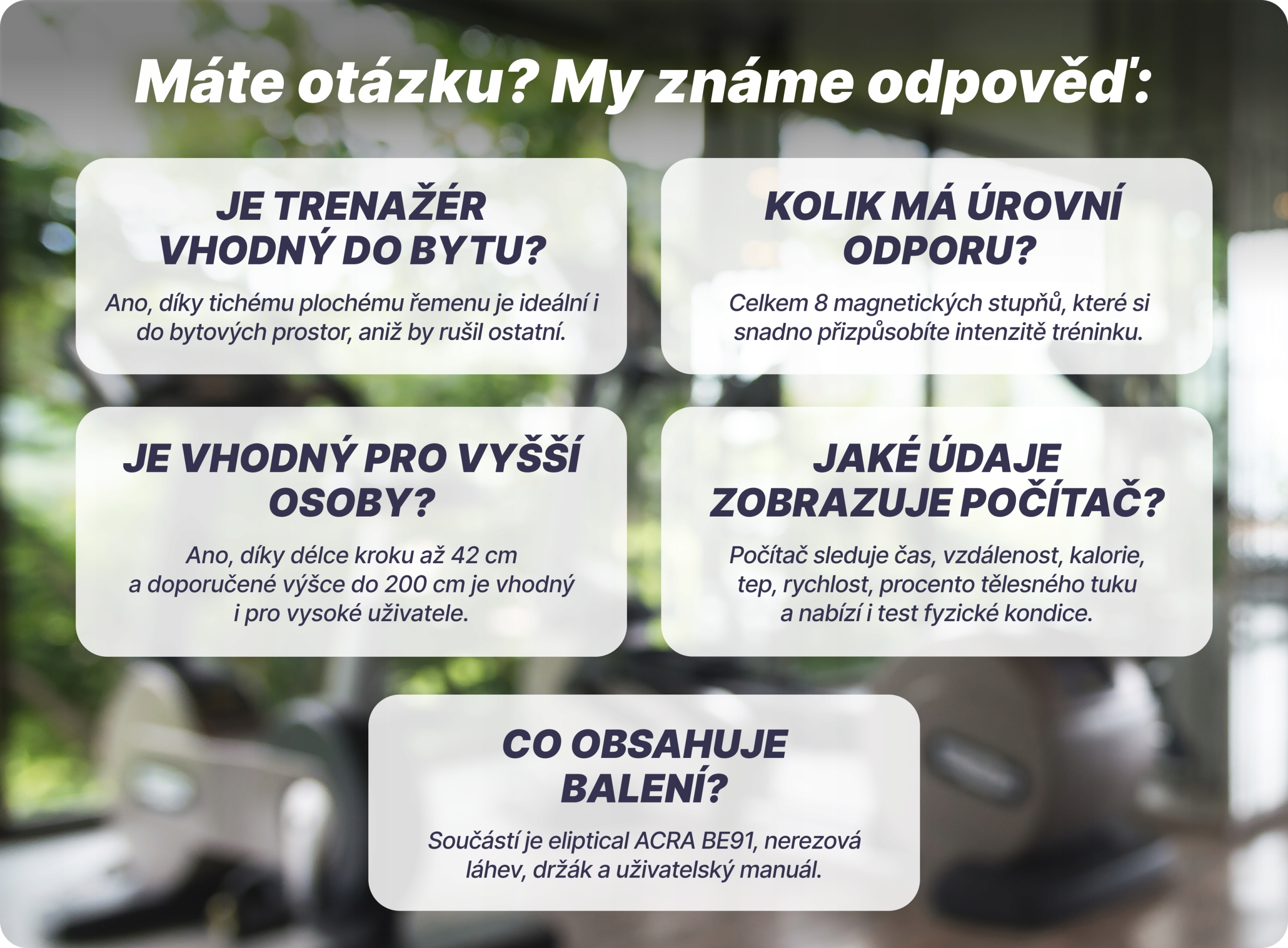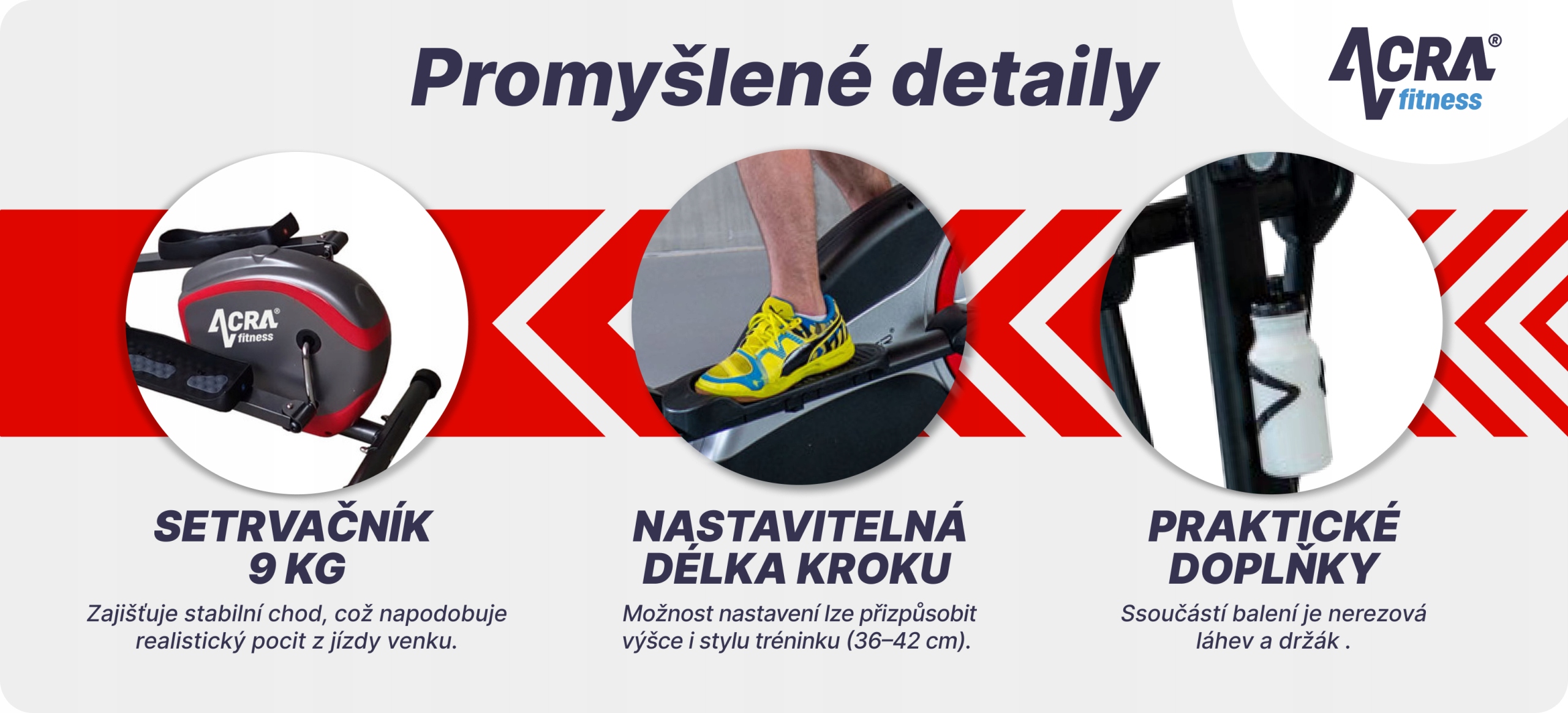 Magnetický eliptical ACRA BE91 je robustní posilovací stroj s následujícími parametry: