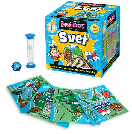 Tento originální BrainBox, speciálně navržený pro zapojení celé rodiny do hry, pomáhá procvičovat paměť, zlepšovat pozorovací schopnosti a přináší mnoho zajímavých skutečností a znalostí o světě, ve které žijeme. Informace jsou pravidelně aktualizovány a každá karta obsahuje vlajku, hlavní město a hranice státu, a stejně tak i kulturní symboly a pamětihodnosti. BrainBox svět je přeložen do 20 jazyků a jako klasická rodinná hra, vyvinutá a vytvořená v Amershamu v Buckinghamshiru představuje britský příběh úspěchu.
