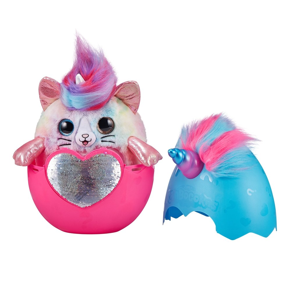 K dispozici jsou celkem 3 exkluzivní plyšové postavičky: kočka, tukan nebo jednorožec, každá s osobitým účesem, který lze kartáčovat a zdobit, a s flitrovým srdíčkem, jež po přetření odhalí skryté tajemství - co daná postava plyšáka miluje. Balení přináší kromě velkého plyšáka ještě více než 25 vzrušujících překvapení z oblasti vlasových i dalších doplňků, včetně malých boo-boocornů s dlouhými vlasy, které lze použít jako nástavec na tužku, barevných příčesků, velkých sponek do vlasů, náramků, prstýnků a dočasných tetování. Ozdoby ve tvaru srdce i boo-boocorní křídla lze vložit do prstýnků. Prostě skvělý dárek přinášející při jeho rozbalování spoustu překvapení!