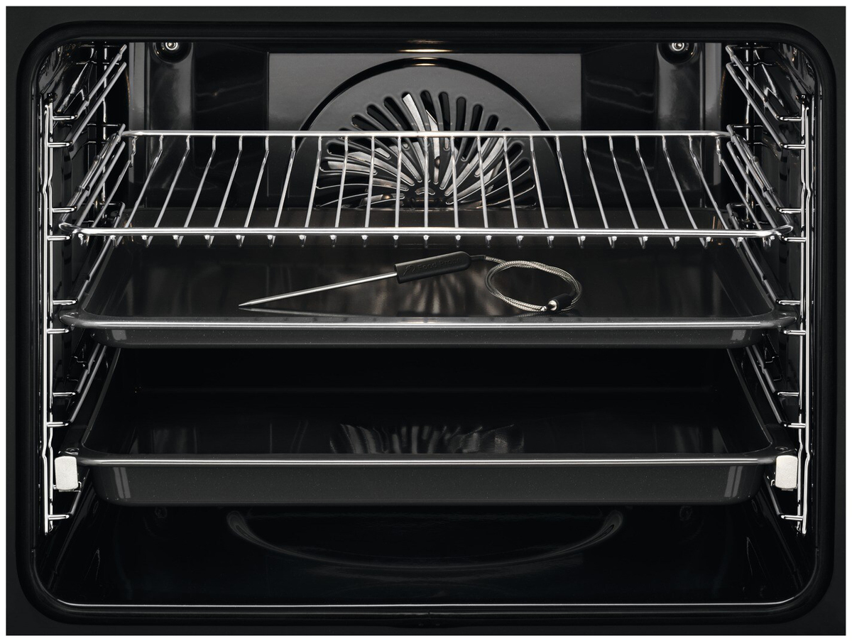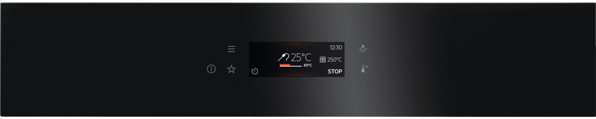 Horkovzdušná trouba 800 SenseCook disponuje seznamem receptů a přednastavených programů, které vám umožní snadno připravit jakékoliv jídlo. K dispozici je také teplotní sonda, která spolehlivě hlídá teplotu uvnitř pokrmu. Pro trvale spolehlivé výsledky v každém pokrmu.