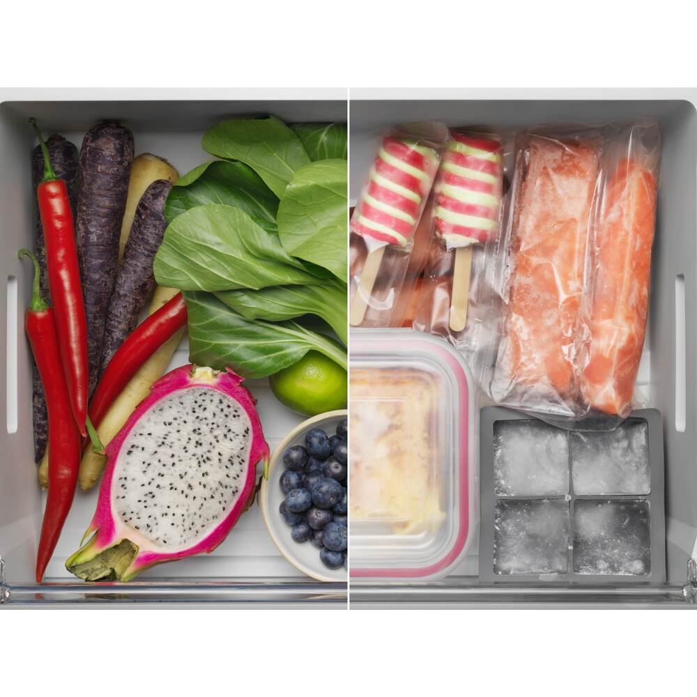 Chrání kvalitu potravin a omezuje plýtvání díky zajištění stabilní, rovnoměrné teploty a vlhkosti v celé chladničce. Chladnička Cooling 360° s vnitřním prostorem z prvotřídní nerezové oceli zajišťuje o 30 % lepší rozložení teploty na každé polici.