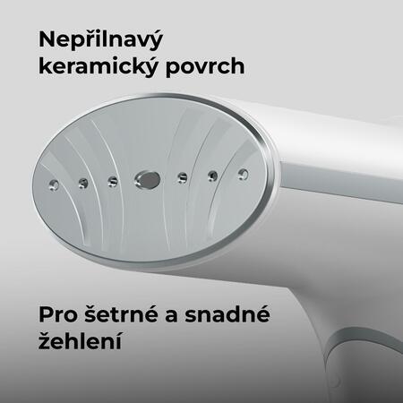 Žehlící plocha se nepřilepí na látku, což vám umožní bezpečně ji přitlačit na jakékoli oblečení bez rizika spálení. Jemné a hladké napařování je zaručeno.