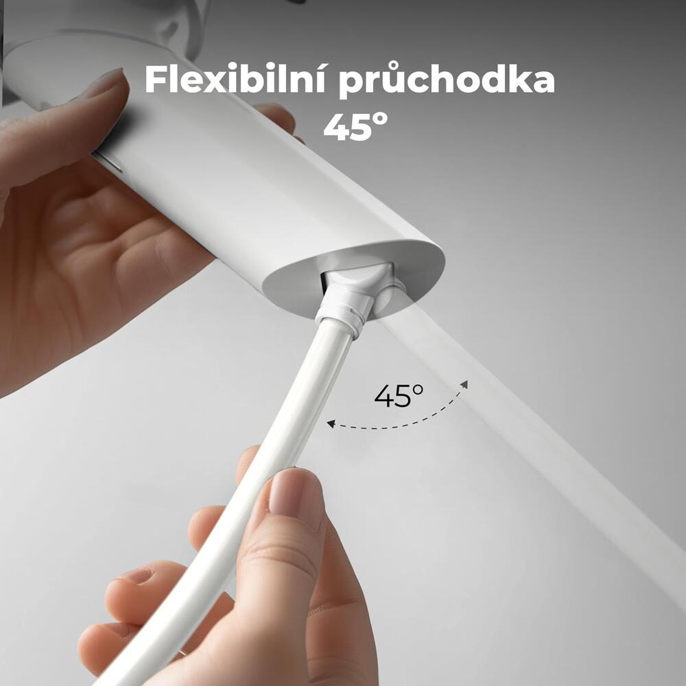 Flexibilní průchodka kabelu se pohybuje v rozmezí 45?, což činí napařovač oděvů snadno manévrovatelným. Napařujte bez obav i v těch nejnáročnějších pozicích.