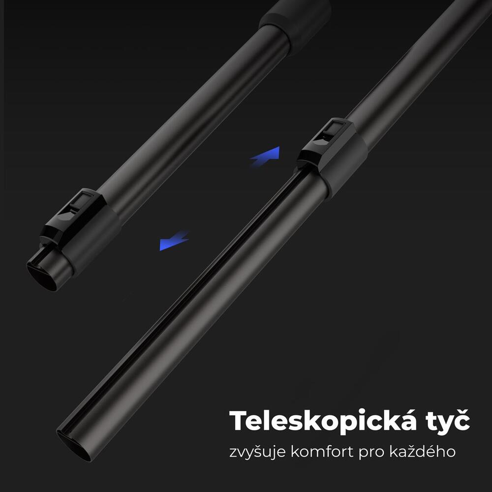 Kovovou trubici lze posunutím nastavit na požadovanou délku pro pohodlé vysátí všech prostor.