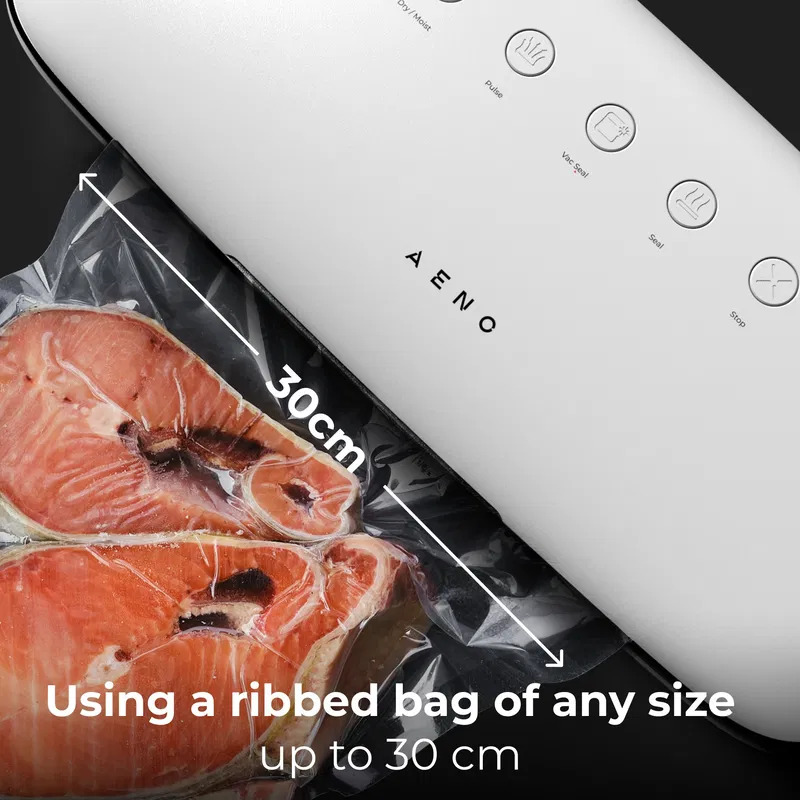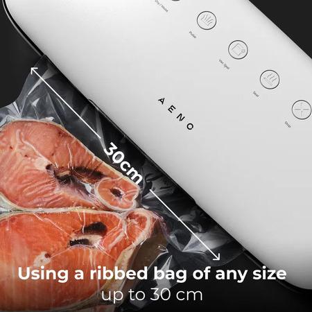 Prodlužte čerstvost potravin díky vakuovačce AENO VS2, která spolehlivě odsaje vzduch a vytvoří pevný svár o šířce 30 cm a tloušťce 2 mm. Vakuovačka je vhodná pro suché i vlhké potraviny, takže v ní můžete uchovávat maso, ryby, zeleninu i hotová jídla. Díky vakuování zůstanou potraviny déle čerstvé, neztratí chuť ani živiny a nedochází k oxidaci.