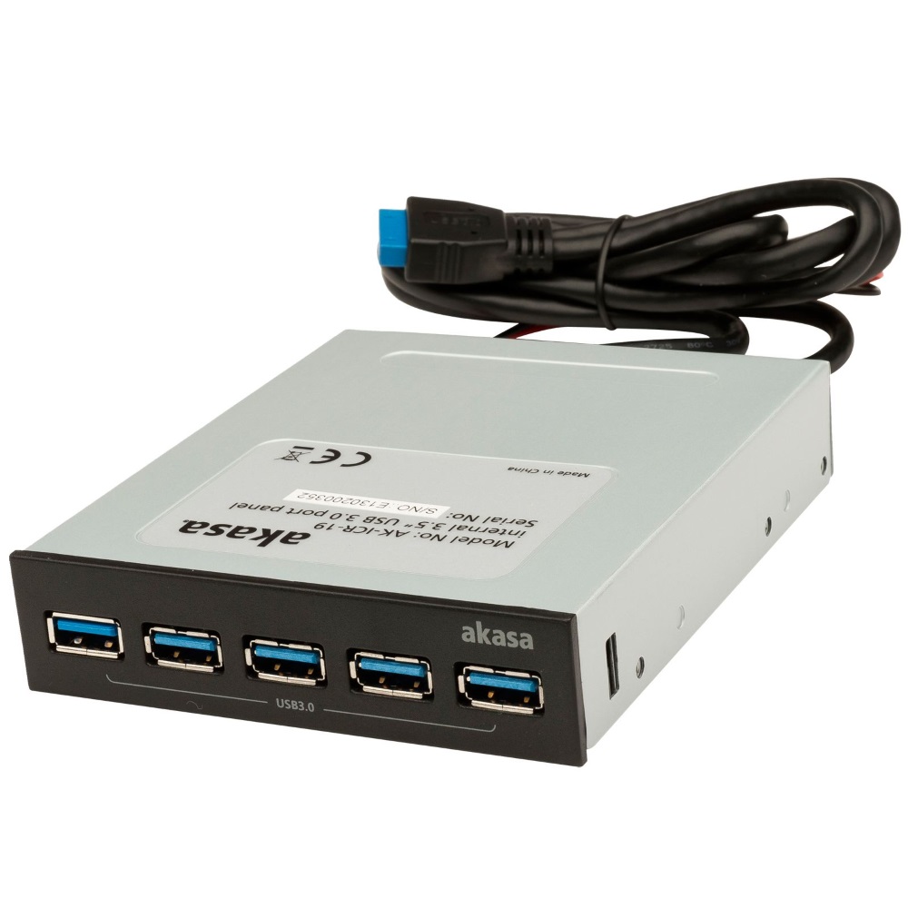 AKASA interní USB Hub do 3,5" pozice / AK-ICR-19 / 5x USB3.0 / černý