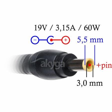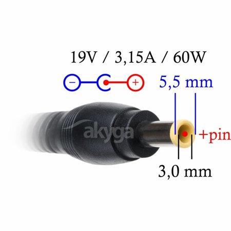Akyga Nabíječka na notebook 19V/3.16A 60W 5.5x3.0 mm + pin pro SAMSUNG