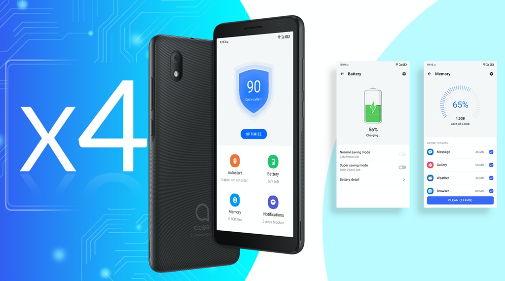 Se smartphonem Alcatel 1B získáte mimořádný uživatelský komfort. Smartphone pracuje na operačním systému Android™ 10 (Go Edition), je vybaven čtyřjádrovým procesorem, inteligentní správou a baterií s celodenní výdrží. Díky tomu si bez problémů poradí s více úkoly najednou. Na 5,5palcovém displeji s rozlišením HD+ budete mít o všem dokonalý přehled. Veškeré informace získáte stisknutím speciálního tlačítka Google Asistent.