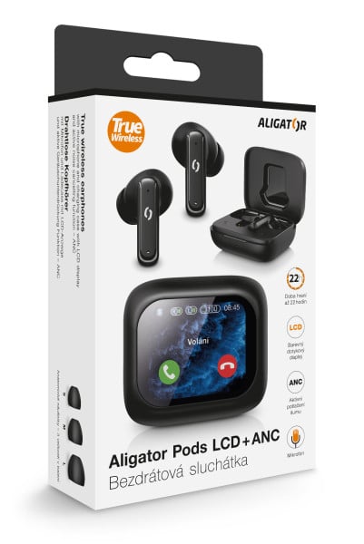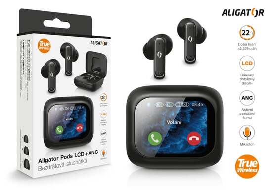 Aligator Pods LCD + ANC jsou bezdrátová sluchátka, která posunují uživatelský zážitek na zcela novou úroveň. Díky pokročilé funkci potlačení šumu (ANC) efektivně eliminují okolní hluk, což vám umožňuje plně se soustředit na vaši oblíbenou hudbu nebo hovory bez rušivých vlivů.