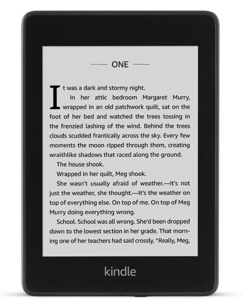 Nejlepší fyzikální vlastností papírové knihy je, že zmizí, když ji čtete. Když jste ponořeni do autorova světa a myšlenek, nevšímáte si knihy, lepidla, papíru nebo inkoustu. Cílem našeho špičkového designu je, aby Kindle zmizel – stejně jako fyzická kniha – takže se můžete ponořit do příběhu, né technologie.