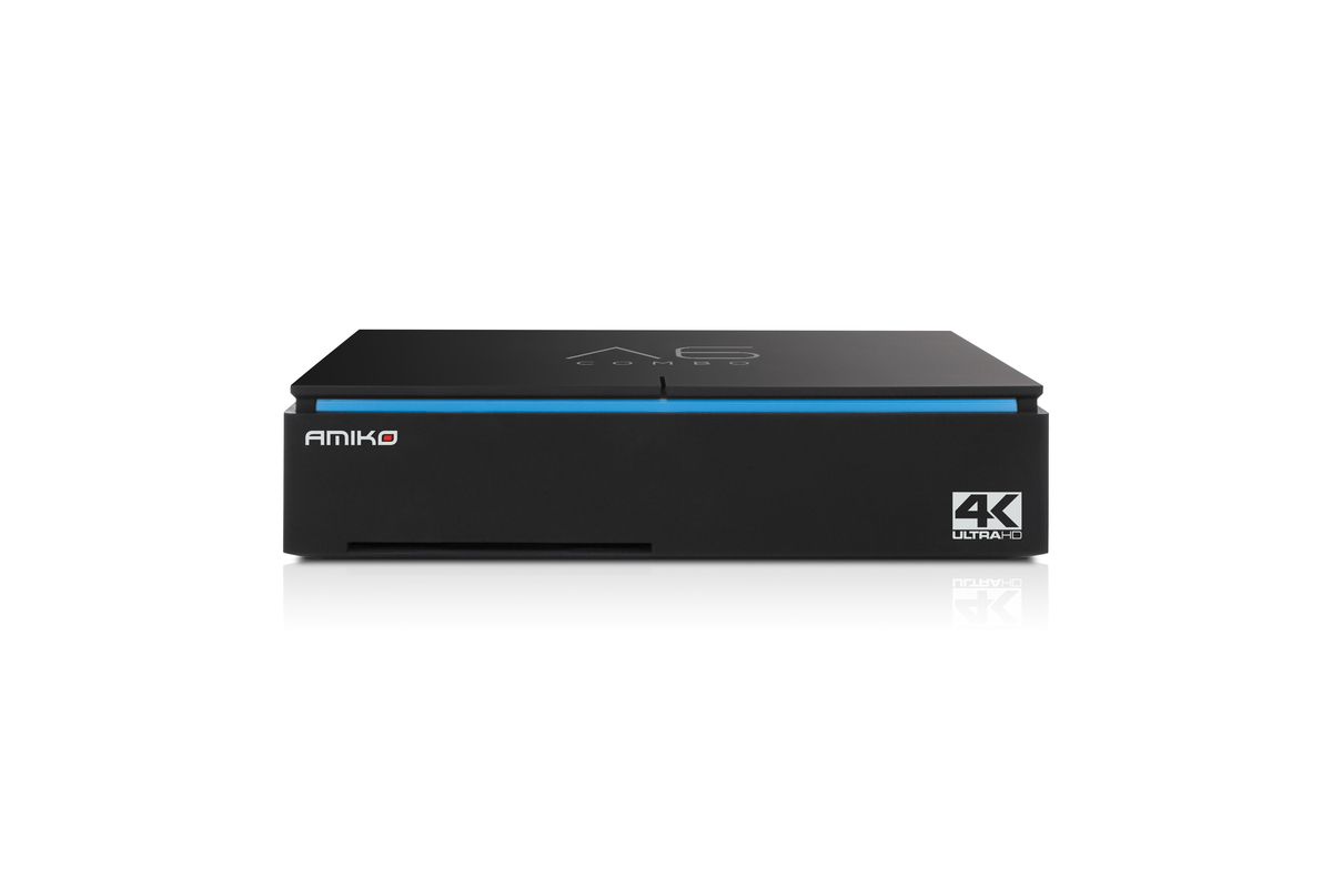 AMIKO A6 COMBO je H.265 4K dvoutunerový combo přijímač pro příjem satelitního vysílání DVB-S2, terestriálního DVB-T/T2, nebo kabelového DVB-C vysílání.