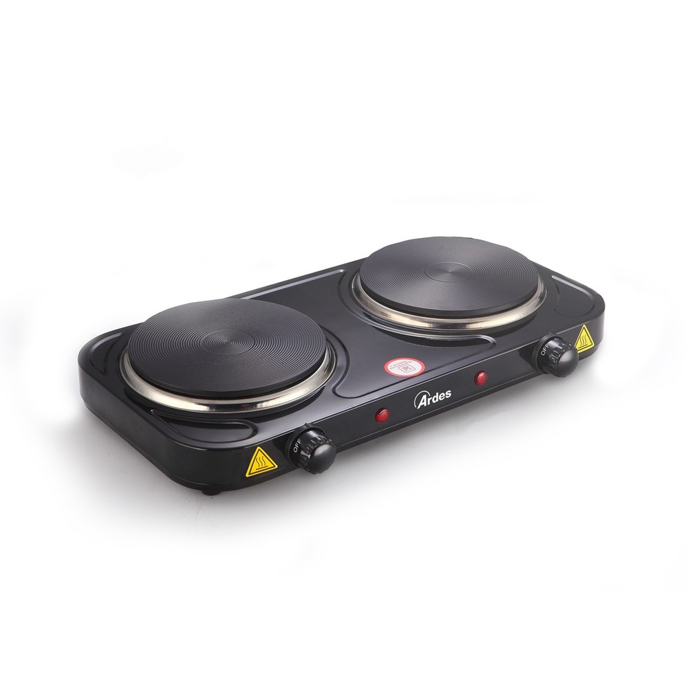 Dvouplotýnkový vařič s plotýnkami o průměru 15,5 a 15,5 cm. Ardes 1F20 je vybaven plynule regulovatelným termostatem, 2 světelnými kontrolkami a ochranou proti přehřátí. Rychlé rozpálení plotýnek. Protiskluzové nožky.