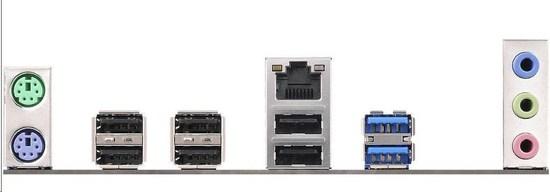 | Rear Panel I/O | - 1 x PS/2 Mouse Port - 1 x PS/2 Keyboard Port - 6 x USB 2.0 Ports (Supports ESD Protection (ASRock Full Spike Protection)) - 2 x USB 3.0 Ports (Etron EJ188H) (Supports ESD Protection (ASRock Full Spike Protection)) - 1 x RJ-45 LAN Port with LED (ACT/LINK LED and SPEED LED) - HD Audio Jacks: Line in / Front Speaker / Microphone |