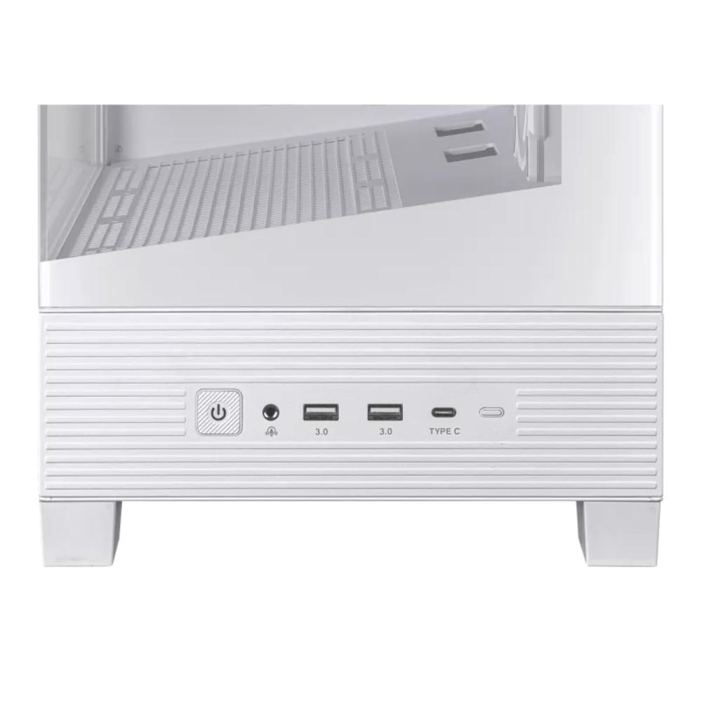 Provedení skříně:Midi Tower; Barva skříně:Bílé; Počet pozic 3.5" (HDD):1; Počet pozic 2.5" (SSD):1; Bočnice:Prosklená; Podsvícení:bez podsvícení; Vybavení PC skříně:Přední Audio panel, Přední USB panel, Průhledná bočnice