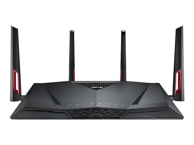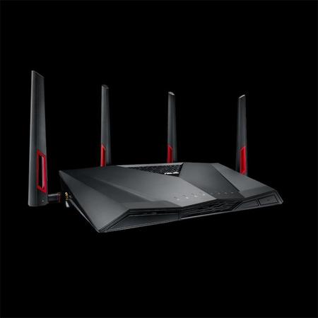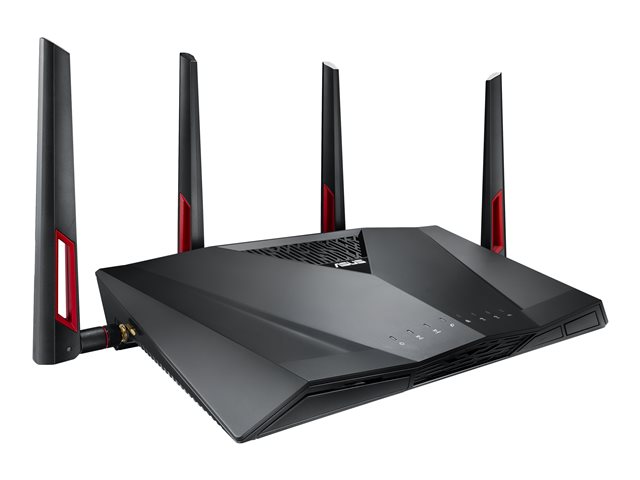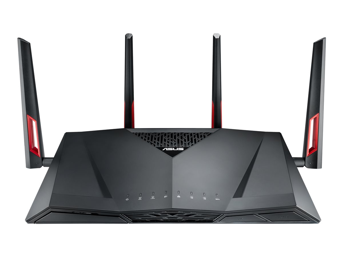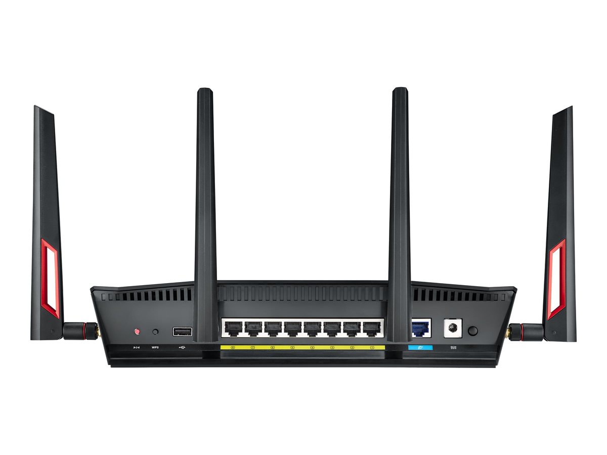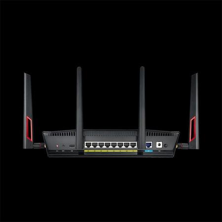 Router RT-AC88U značky Asus představuje ultra rychlý Wi-Fi modem. Tento AC3100 dvoupásmový Gigabit WiFi herní router s technologií MU-MIMO podporuje zabezpečení sítě AiProtection od Trend Micro i AiMesh pro Wi-Fi Mesh systém a herní akcelerátor WTFast.