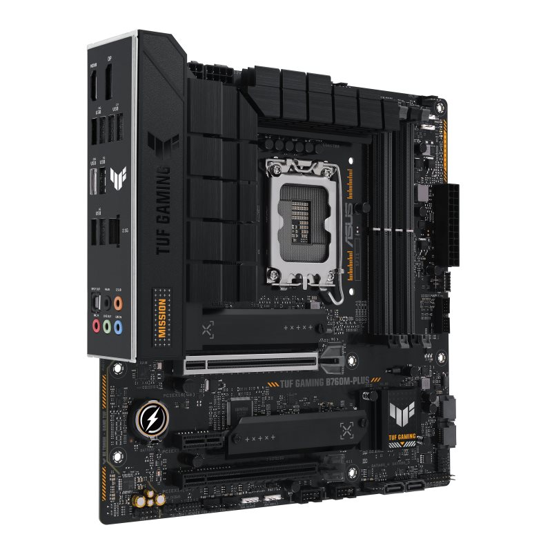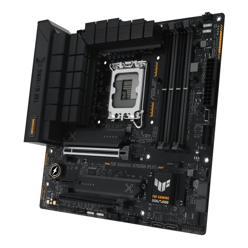 TUF GAMING B760M-PLUS takes all the essential elements of the latest Intel processors and combines them with game-ready features and proven durability. Engineered with military-grade components, an upgraded power solution and a comprehensive cooling system, this motherboard goes beyond expectations with rock-solid performance for marathon gaming. TUF GAMING motherboards also undergo rigorous endurance testing to ensure that they can handle conditions where others may fail. Aesthetically, this model incorporates an embossed nameplate and geometric design elements to reflect the dependability and stability that defines the TUF GAMING series.