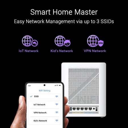 - Snadno vytvořte až tři SSID pomocí funkce Smart Home Master pro jednoduché nastavení a správu zařízení IoT, okamžité připojení VPN a pohodlnou rodičovskou kontrolu.
