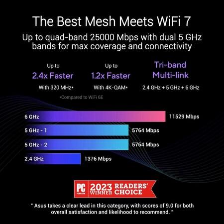 BE25000 Quad Band WiFi 7 (802.11be) Mesh Router, pokrytí až 8000 čtverečních stop, dva porty 10G, Smart Home Master s multi-SSID pro IoT, VPN a rodičovskou kontrolu, zabezpečení sítě bez předplatného, AiMesh, 4G a 5G mobilní tethering