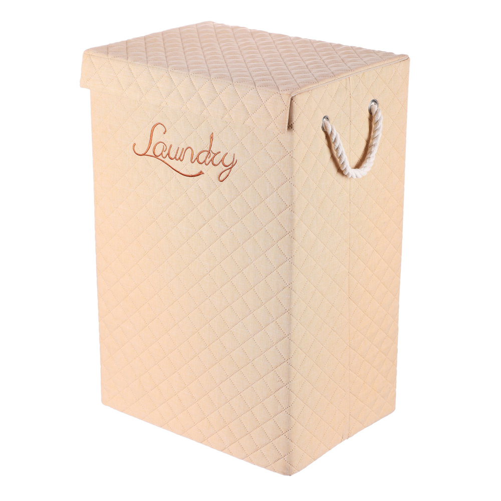 Vysoký látkový koš v béžovém odstínu ve tvaru krabice s uchy z provázků a víkem, navíc potažený hebkou látkou, bude skvělou volbou pro každou domácnost. Praktický a stylový prostředek k tomu, jak efektivně schovat prádlo a zároveň přidat do prostoru na oko příjemný dekorační prvek.