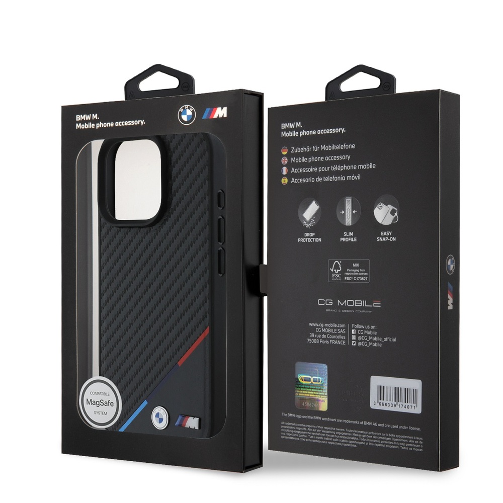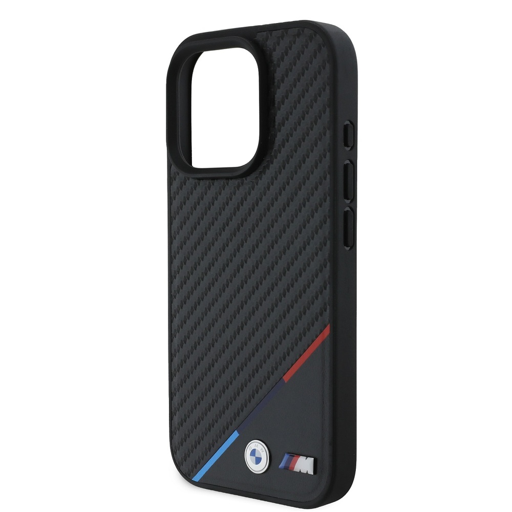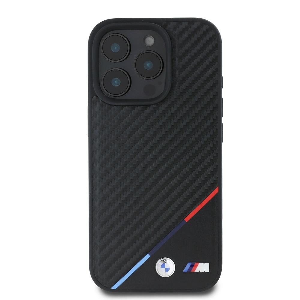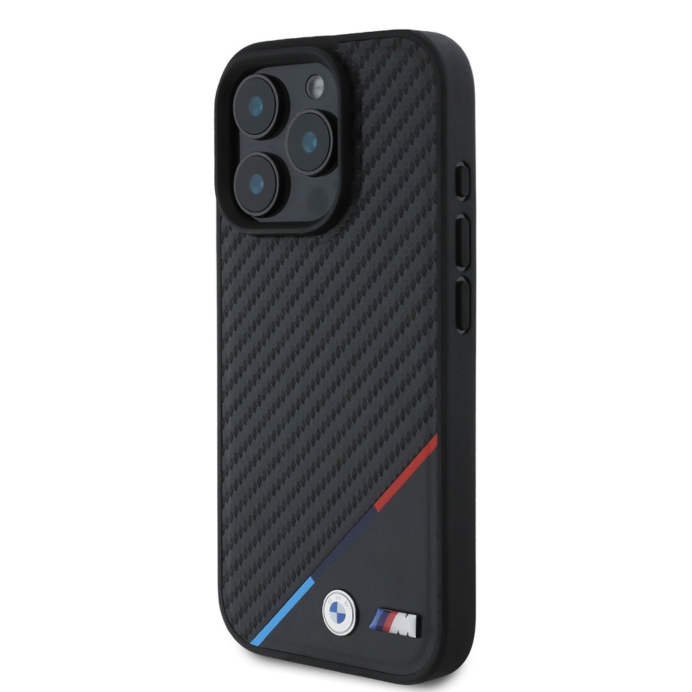 BMW M PU Carbon Tricolor Stripe MagSafe Zadní Kryt pro iPhone 16 Pro Black