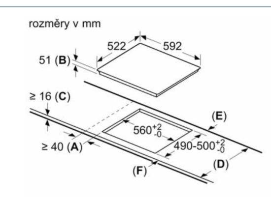 rozměry pro vestavbu (V x Š x H) : 51 x 560 x 490 - 500 mm