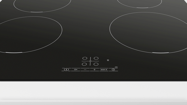 indukční varná deska, 60 cm, 4 indukční varné zóny, ovládání TouchSelect, PowerBoost, dětská pojistka, 2stupňový ukazatel zbytkového tepla pro každou varnou zónu, příkon: 3,7 kW, design bez rámečku