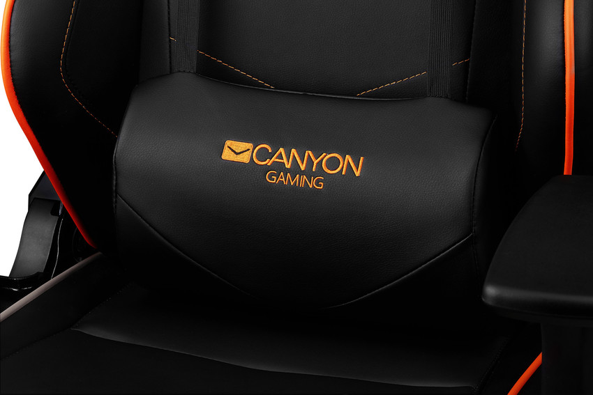 CANYON herní křeslo Deimos, PU kůže, kovový rám, 90-165°, 3D opěrka, plynový zdvih třídy 4, černo-oranžová