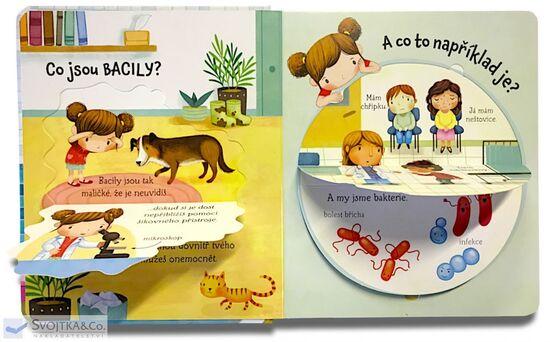 Jsou tak malinké, že je ani neuvidíš. Bakterie a bacily jsou všude kolem nás. Některé nám pomáhají, jiné ale způsobují nemoci. V bohatě ilustrované knížce s odklápěcími okénky zjistíš, kde všude bacily žijí, jak se šíří a jak se naše tělo může proti bacilům bránit.