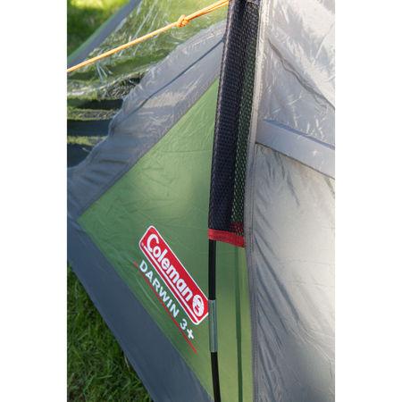 Turistický stan Coleman Darwin 3+ je samonosný turistický stan se dvěma zkříženými pruty, tvořícími ložnici a třetí předsunutá tyč vytváří prostornou předsíňku s integrovanou podlážkou. Zatemnitelná průhledná okna v předsíňce dodávají dostatek světla uvnitř.