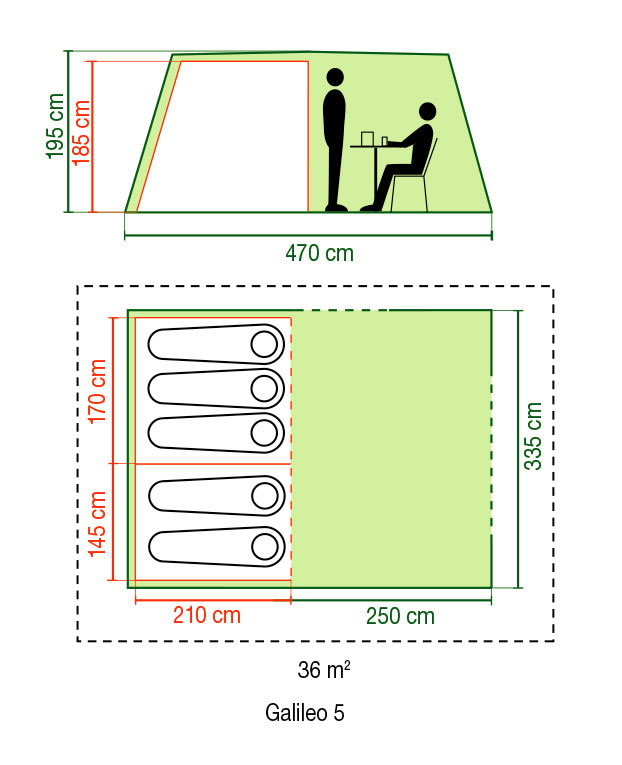Rodinný stan Coleman Galileo 5 je pohodlný kempový stan, který se díky tunelové koncepci staví velmi rychle. Plně integrovaná podlážka přináší dokonalou ochranu před nepohodou zvenčí. Kontakt se světem zajišťují panoramatická okna, která lze v případě potřeby zcela zatemnit. Zdvižením hlavního vchodu vznikne praktický přístřešek.