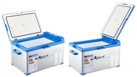 Dvířka chladicího boxu jsou variabilní, umožňují jak podélné otvírání, tak i snadnou úpravu na příčné otevírání. Díky postranním madlům z odolného plastu je tento box snadno přenosný. Jeho vnější plášť je vyroben z kvalitně lakovaného hliníku stříbrné barvy, který spolu s perfektní PU izolací zajišťuje dlouhodobé zachování stabilní teploty uvnitř boxu a zaručuje velmi nízkou spotřebu energie.