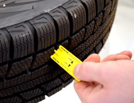 Navíc jsou na zadní straně připevněny další užitečné pomůcky. Žeton do nákupního vozíku a měrka pro orientační měření hloubky dezénu pneumatik.