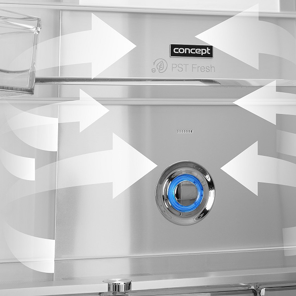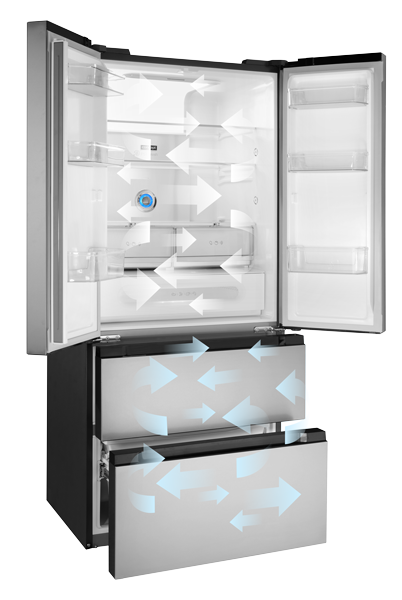 Systém Total No Frost eliminuje tvorbu námrazy díky rovnoměrnému šíření suchého vzduchu. Tři nezávislé chladicí okruhy snižují míchání pachů mezi oddíly a zrychlují proces zmrazování, čímž pomáhají zachovat nutriční hodnoty potravin.