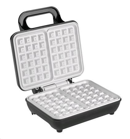 Vaflovač • keramické bílé plotýnky • nepřilnavý povrch • světelný indikátor provozu a nahřátí • tepelně izolované držadlo • prostor pro uložení kabelu • příkon 1 000 W