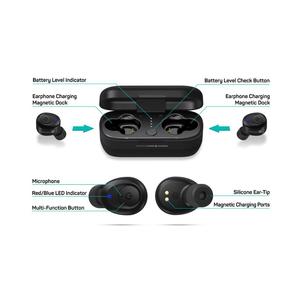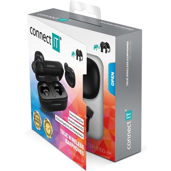 Přenosná bezdrátová Bluetooth True Wireless sluchátka s nabíjecí powerbankou CONNECT IT "Hyper-Bass Ed. II" CEP-9100-BK odolné proti potu i stříkající vodě.