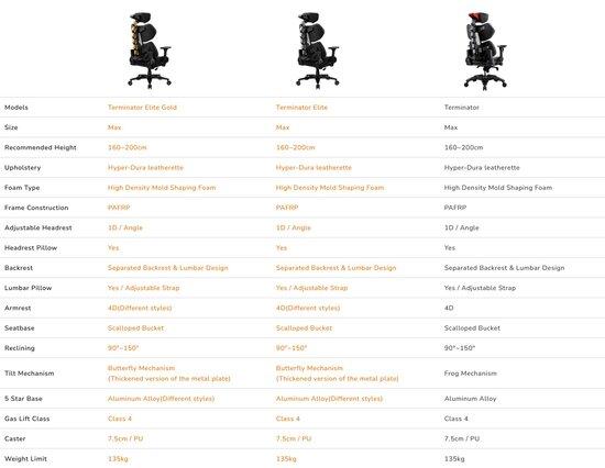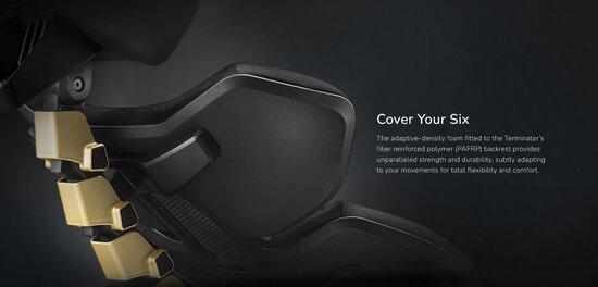 Terminator Elite agresivně propojuje styl s funkčním designem. Jeho jedinečné vlastnosti zvyšují laťku ergonomické podpory a pohodlí na nevídanou úroveň a nenechávají nic stát v cestě celému spektru hráčů - od nadšenců až po elitu - v tom, co umí nejlépe: hrát.