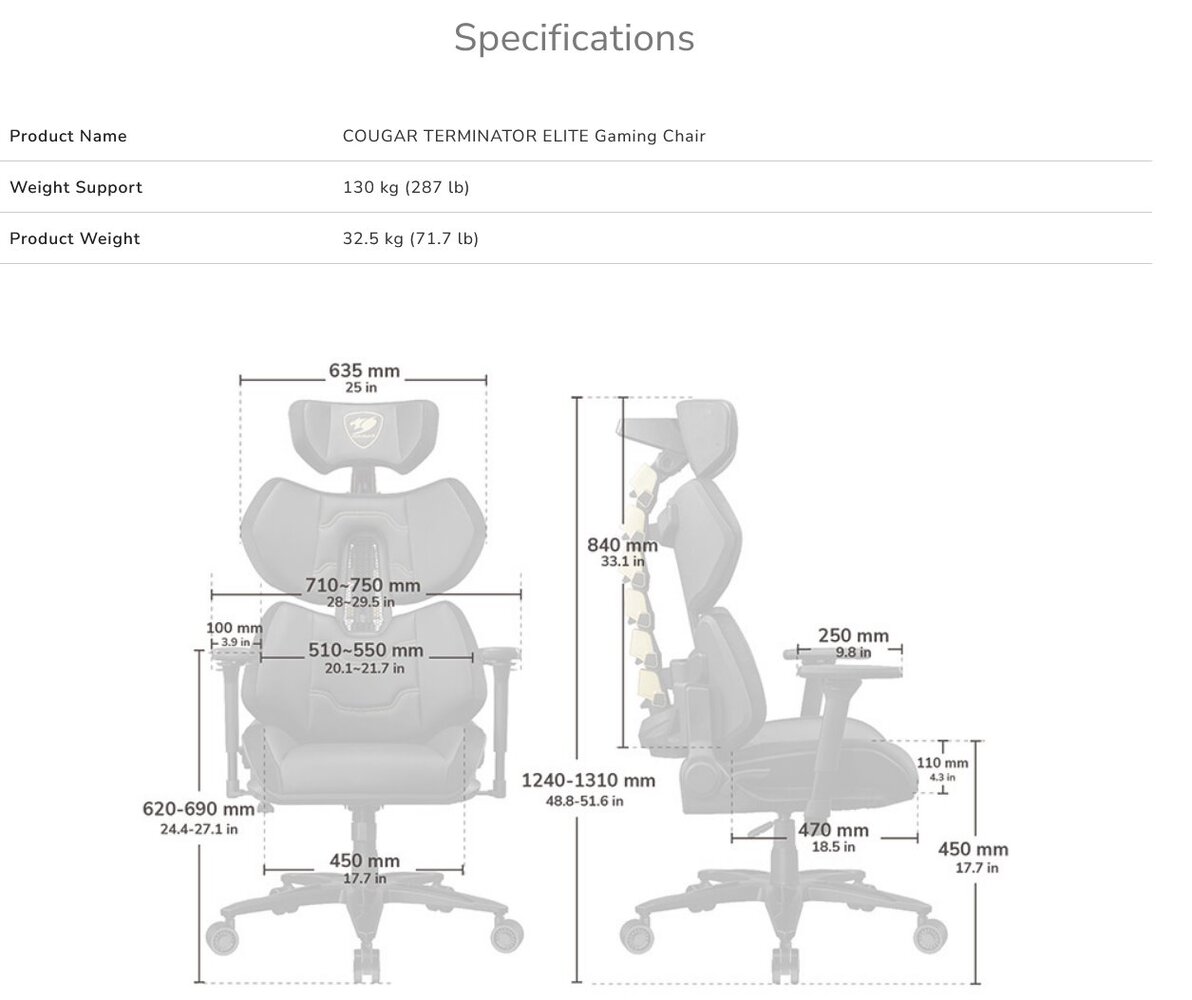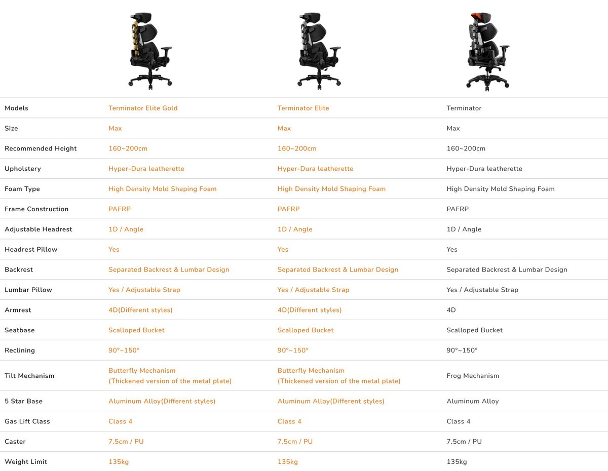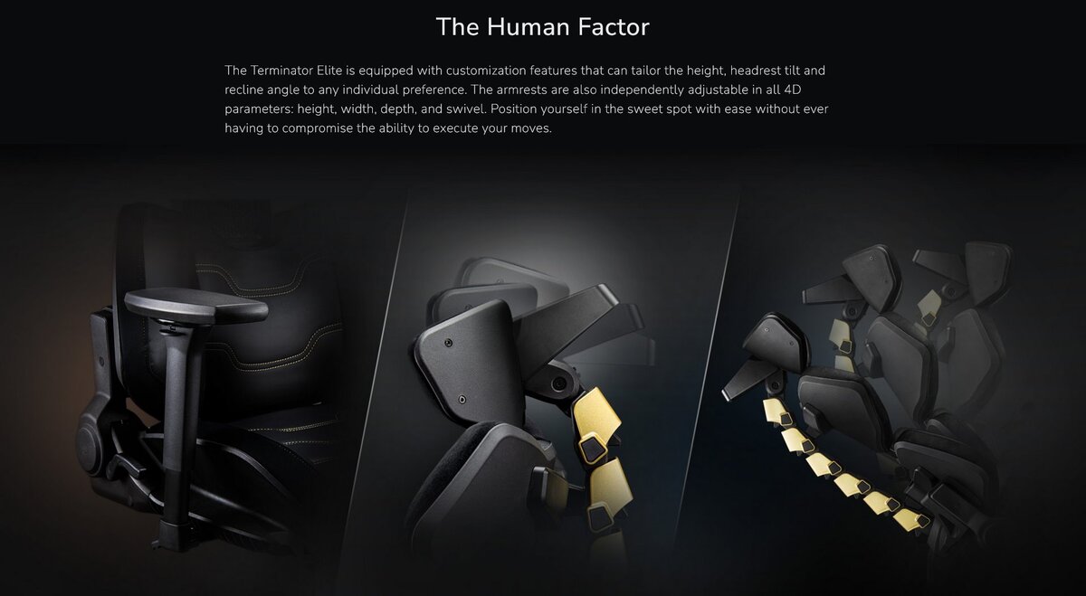 Terminator Elite agresivně propojuje styl s funkčním designem. Zvyšuje laťku ergonomické podpory a pohodlí na nebývalou úroveň a hráčům nebrání v tom, aby dělali to, co umí nejlépe: hráli.