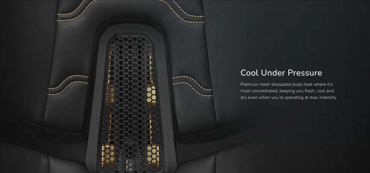 Polyamidová síťovina letecké kvality odvádí tělesné teplo tam, kde se nejvíce koncentruje, a udržuje vás tak svěží, chladné a suché, i když pracujete s maximální intenzitou.