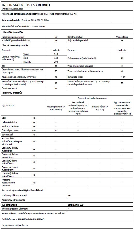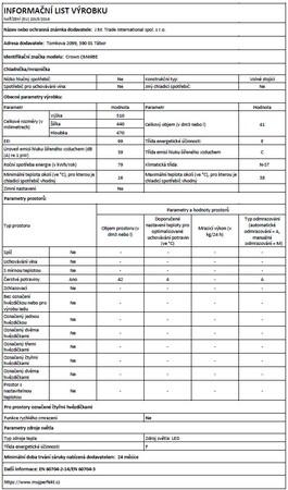 - Nízká spotřeba energie – 0,334 kWh/den, 122 kWh/rok