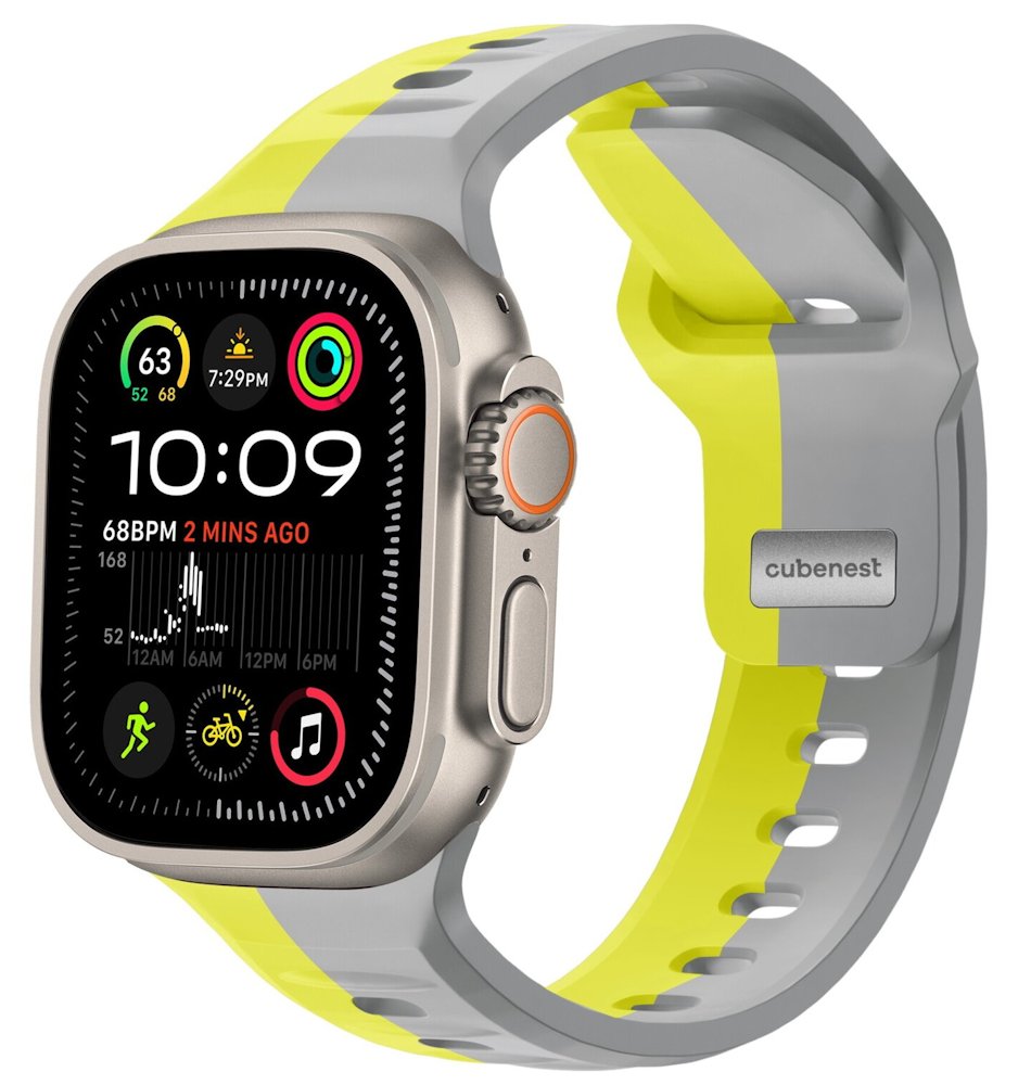 Cubenest Prémiový silikonový sportovní řemínek na Apple Watch žluto-šedý (42-49mm)
