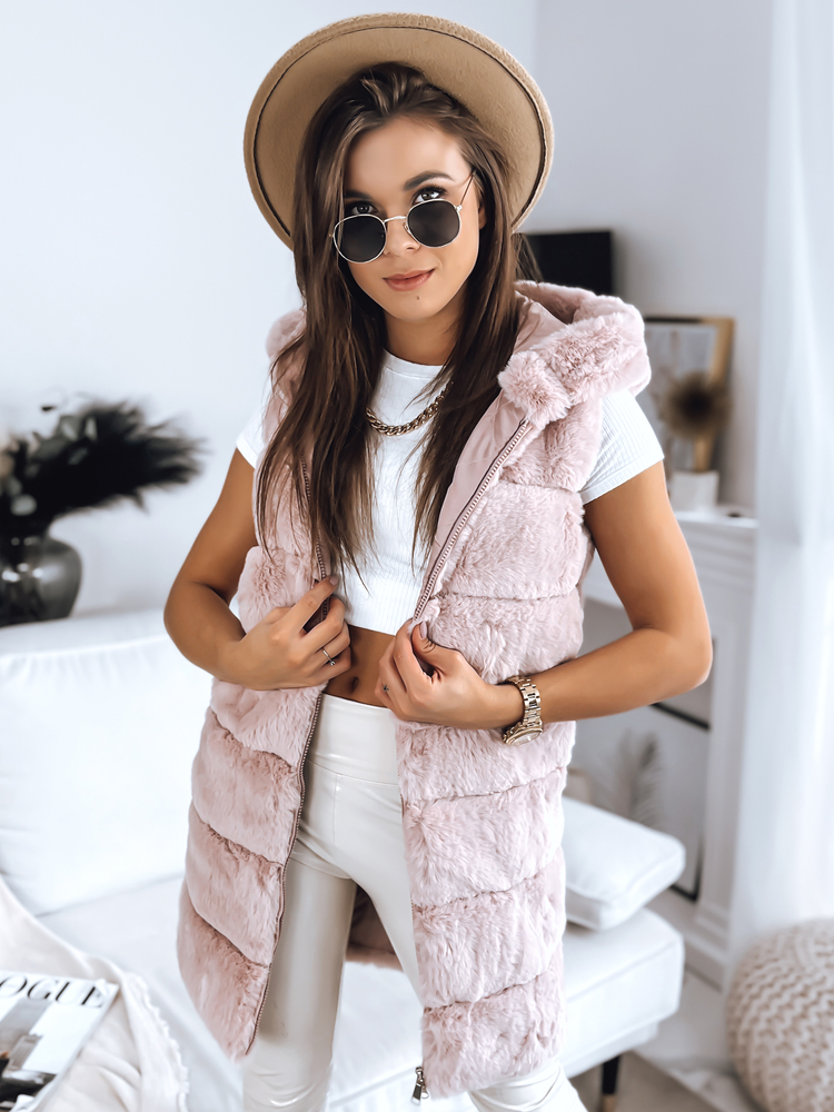 Dámská vesta ASHTON: Kožešinová vesta, která skvěle doplní vaše stylizace. Model má podšívku a dvě přední kapsy. Vesta se zapíná na zip a má neodepínatelnou kapuci. Ideální pro chladné dny. Růžová barva.; Složení: 100% polyester.; Rozměry modelu:: Boky: 85 cm; Pas: 68 cm; Prsa: 87 cm; Výška: 172 cm; ...
