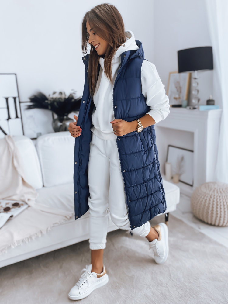 Prošívaná dlouhá vesta je perfektním řešením pro chladné dny. Model ALENA má po stranách zipy a vpředu dvě prostorné kapsy. Kapuce je odepínatelná. Vesta se zapíná na zip a druky, díky čemuž chrání před chladem.